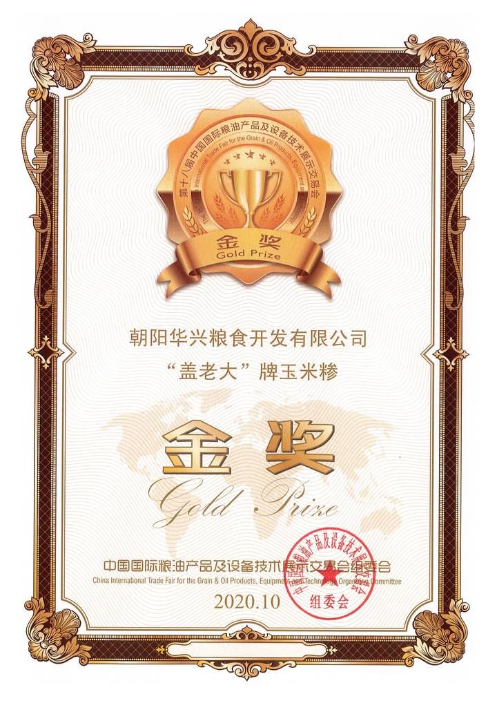 我司“蓋老大”牌玉米糝在國(guó)際展會(huì)獲得金獎(jiǎng)榮譽(yù)