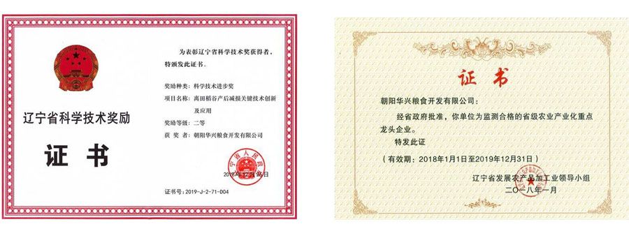 公司現(xiàn)已通過ISO9001:2008質(zhì)量管理體系認(rèn)證;公司的“蓋老大”牌商標(biāo)于2014年被評(píng)為遼寧省著名商標(biāo); 2012年6月中國(guó)糧食行業(yè)協(xié)會(huì)授予朝陽(yáng)華興糧食開發(fā)有限公司“全國(guó)放心糧油示范加工企業(yè)”稱號(hào),2017年獲得“遼寧省放心糧油示范加工企業(yè)”稱號(hào)。